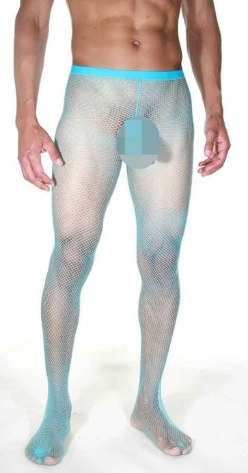 Мужские колготы в мелкую сеточку. На колготах есть вырезы в интимной зоне и на ягодицах. Ткань, из которой изготовлены колготы, отлично тянется и не будет доставлять никакого дискомфорта.