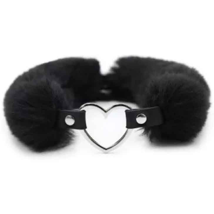 Ошейник с меховой опушкой. Декорирован металлическим сердечком.