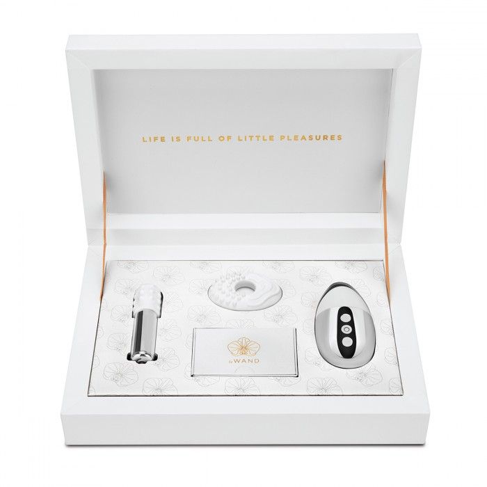 Мини-радости на каждый день! Получите удовольствие наедине или с партнером, используя этот нежнейший и элегантный набор, состоящий из двух потрясающих игрушек Le Wand. Благодаря перезаряжаемым вибраторам Le Wand Bullet и Le Wand Point в блестящей отделке Special Edition Silver Chrome - вы получите сотни волн мощной вибрации, которые приведут вас к чувственному и сладкому оргазму. Просто управляйте 6-ю режимами интенсивности и 15-ю режимами вибрации у Point и 4 уровнями интенсивности с 11 режимами вибрации у Bullet! Каждый набор Le Wand Little Pleasures включает: перезаряжаемый вибратор Le Wand Bullet, перезаряжаемый вибратор Le Wand Point, текстурированные силиконовые насадки, брошь с логотипом Le Wand, дорожная сумка из микрозамши, USB-кабель для зарядки. В комплекте: Le Wand Bullet, Le Wand Point, текстурированные силиконовые насадки, брошь, дорожная сумка, USB-кабель для зарядки.