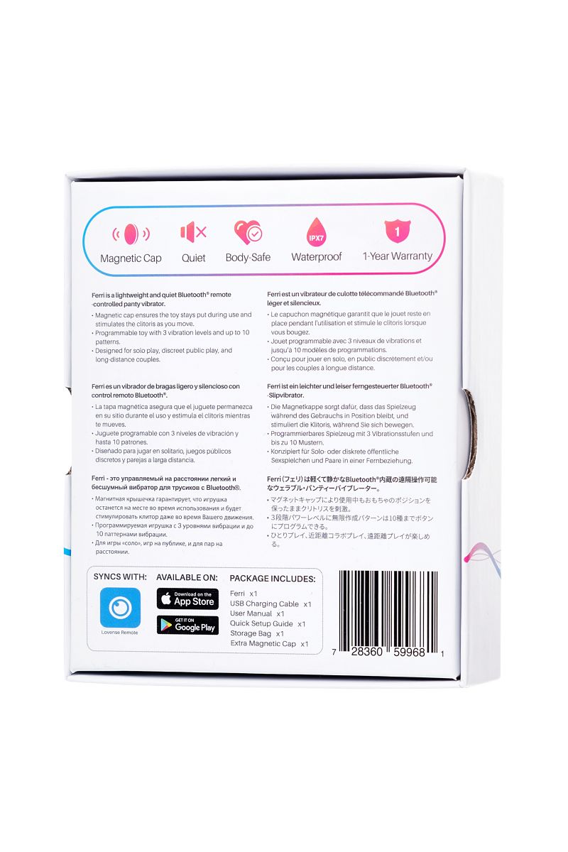 В секс-шопе Orgasmix вы можете купить Розово-черный вибростимулятор в трусики Lovense Ferri артикул 194036 по цене руб. с доставкой в город Одинцово. Мы осуществляем доставку по всей России. Ближайшая дата отправки этого товара . Заказы принимаются круглосуточно через интернет-магазин.